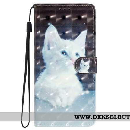 Lærdeksel Folio Deksel Oppo A98 5g Mobildeksel 3d Hvit Katt Med Stropp
