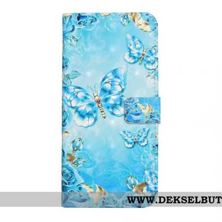 Folio Deksel Xiaomi 14t Pro Blå Sommerfugler Og Diamanter Beskyttelse Deksel