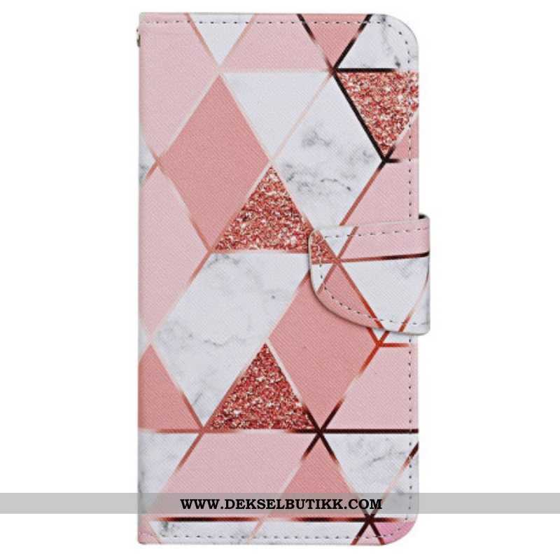 Folio Deksel Til iPhone 15 Med Kjede Marmor- Og Glitterrem