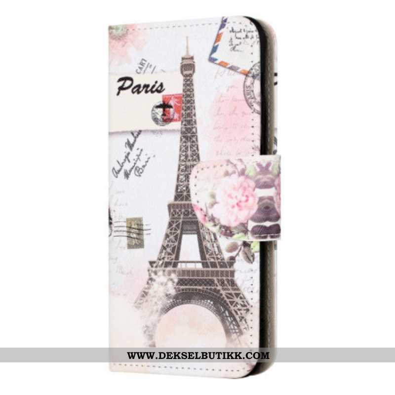 Folio Deksel Til iPhone 15 Vintage Eiffeltårnet