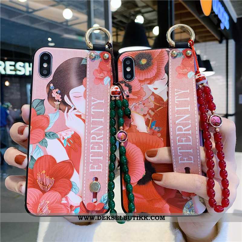 Deksel iPhone Xs Beskyttelse Støtte Anti-fall Kinesisk Stil Rød, Etui iPhone Xs Hengende Ornamenter