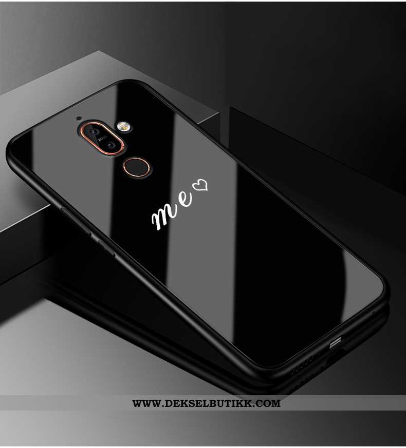 Etui Nokia 7 Plus Silikon Svart Glass Enkel, Deksel Nokia 7 Plus Beskyttelse Til Salgs