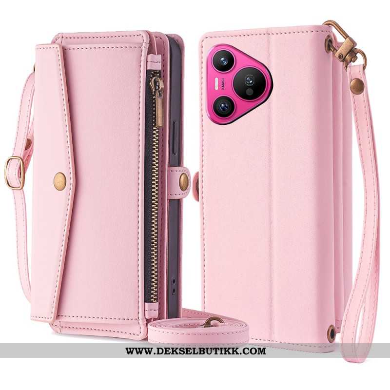 Folio Deksel Huawei Pura 70 Lommebok Med Skulderstropp Og Stropp Beskyttelse Deksel