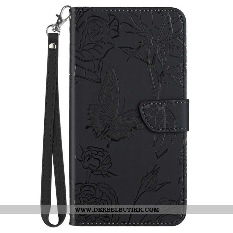 Folio Deksel Til Samsung Galaxy M55 5g Sommerfugletrykk Med Stropp