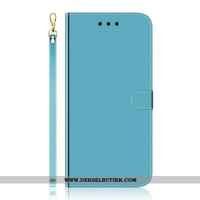 Samsung Galaxy S22 5G Er Perfekt Sikker Med Dette Imiterte Skinndekselet Med Speildeksel Som Kommer Med En Veldig Praktisk Stropp.